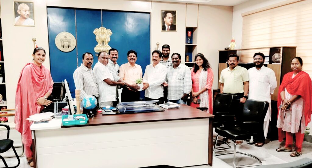 మంచిర్యాల ప్రత్యక్షత:- జిల్లా టీఎన్జీవో అధ్యక్షులు గడియారం శ్రీహరి ఆధ్వర్యంలో జిల్లా అదనపు కలెక్టర్(రెవెన్యూ) పి.చంద్రయ్య ను, జిల్లా పశుసంవర్ధక అధికారి శంకర్ లకు ఆంగ్ల నూతన సంవత్సరాన్ని పురస్కరించుకుని వారి కార్యాలయంలో పుష్పగుచ్చం అందజేసి శాలువాతో సన్మానించి శుభాకాంక్షలు తెలియజేశారు. జిల్లా అదనపు కలెక్టర్(రెవెన్యూ) పి.చంద్రయ్య మాట్లాడుతూ..జిల్లా లోని రెవెన్యూ ఉద్యోగులందరూ నిరంతరాయంగా కష్టపడి భూభారతి ఇతర రెవెన్యూ పథకాల అమలుపరచడంలో రాష్ట్రంలో మంచిర్యాల జిల్లా నెంబర్ వన్ స్థానంలో ఉండాలని ఆయన సూచించారు.అనంతరం జిల్లా అధ్యక్షులు గడియారం శ్రీహరి మాట్లాడుతూ.. మంచిర్యాల జిల్లా తెలంగాణ రాష్ట్రం లోనే మంచిర్యాల జిల్లా భూభారతి ఇతర రెవెన్యూ పథకాలలో మొదటి స్థానంలో ఉండడానికి ఉద్యోగులు అందరం నిరంతరం కృషి చేస్తామని తెలిపారు.ఈ కార్యక్రమంలో టీఎన్జీవో మంచిర్యాల జిల్లా కార్యదర్శి భూముల రామ్మోహన్, కేంద్ర సంఘం కార్యదర్శి పొన్న మల్లయ్య, అసోసియేట్ అధ్యక్షులు శ్రీపతి బాపురావు, కోశాధికారి సతీష్ కుమార్,ఉపాధ్యక్షులు శ్రీనివాస్, కేజియా రాణి టీఎన్జీవో నాయకులు,సభ్యులు పాల్గొన్నారు.