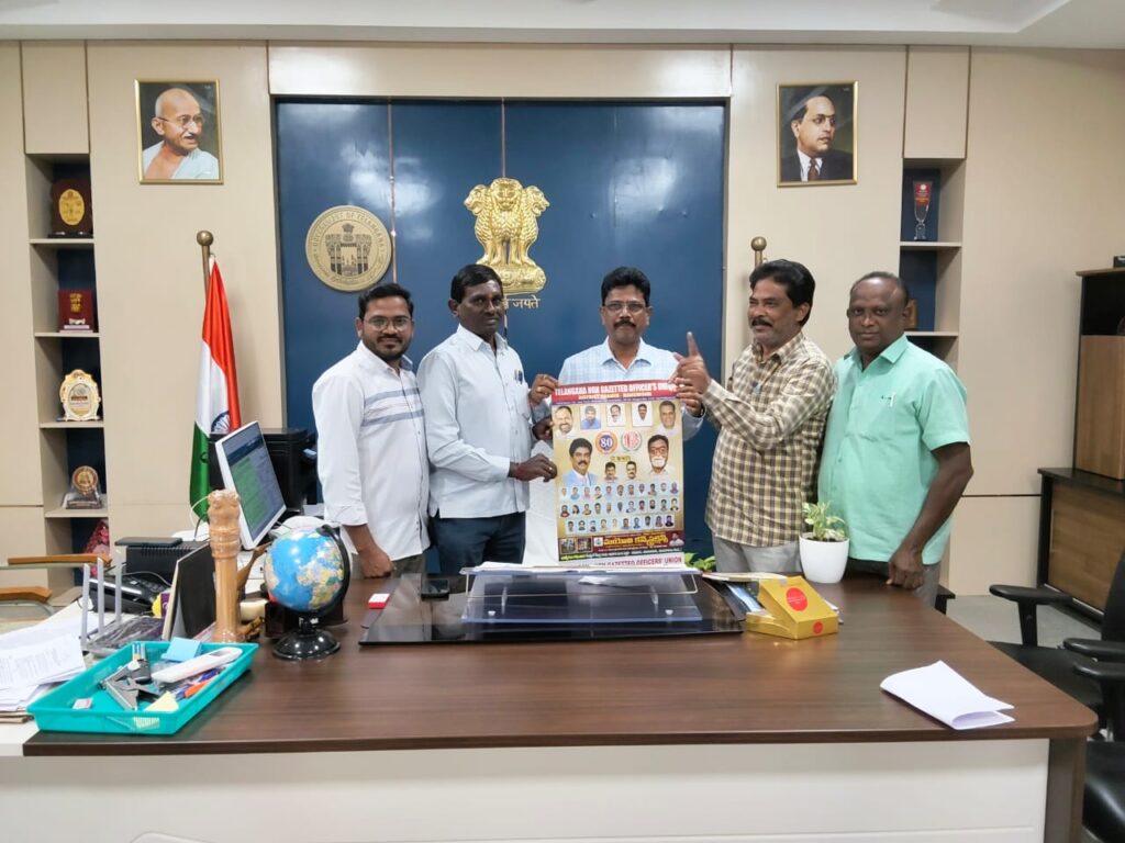మంచిర్యాల ప్రత్యక్షత:-జిల్లా అడిషనల్ కలెక్టర్ రెవెన్యూ పి.చంద్రయ్య ఐఏఎస్ గా ఆయన సందర్భంగా మంచిర్యాల జిల్లా టిఎన్జీవో అధ్యక్షులు గడియారం శ్రీహరి ఆధ్వర్యంలో మర్యాదపూర్వకంగా కలిసి ఆయనకు శుభాకాంక్షలు తెలియజేశారు. అలాగే జిల్లా టీఎన్జీవో క్యాలెండర్, డైరీలను అడిషనల్ కలెక్టర్ చేతుల మీదుగా ఆవిష్కరించారు. అడిషనల్ కలెక్టర్ స్పందిస్తూ టీఎన్జీవో క్యాలెండర్, డైరీలు నిద్రించిన విధానం ఉద్యోగులకు ఉపయోగకరంగా ఉంటుందని కొనియాడారు.ఈ కార్యక్రమంలో ఉపాధ్యక్షులు రామ్ కుమార్, తిరుపతి, టౌన్ అధ్యక్షులు నాగుల గోపాల్ పాల్గొన్నారు.