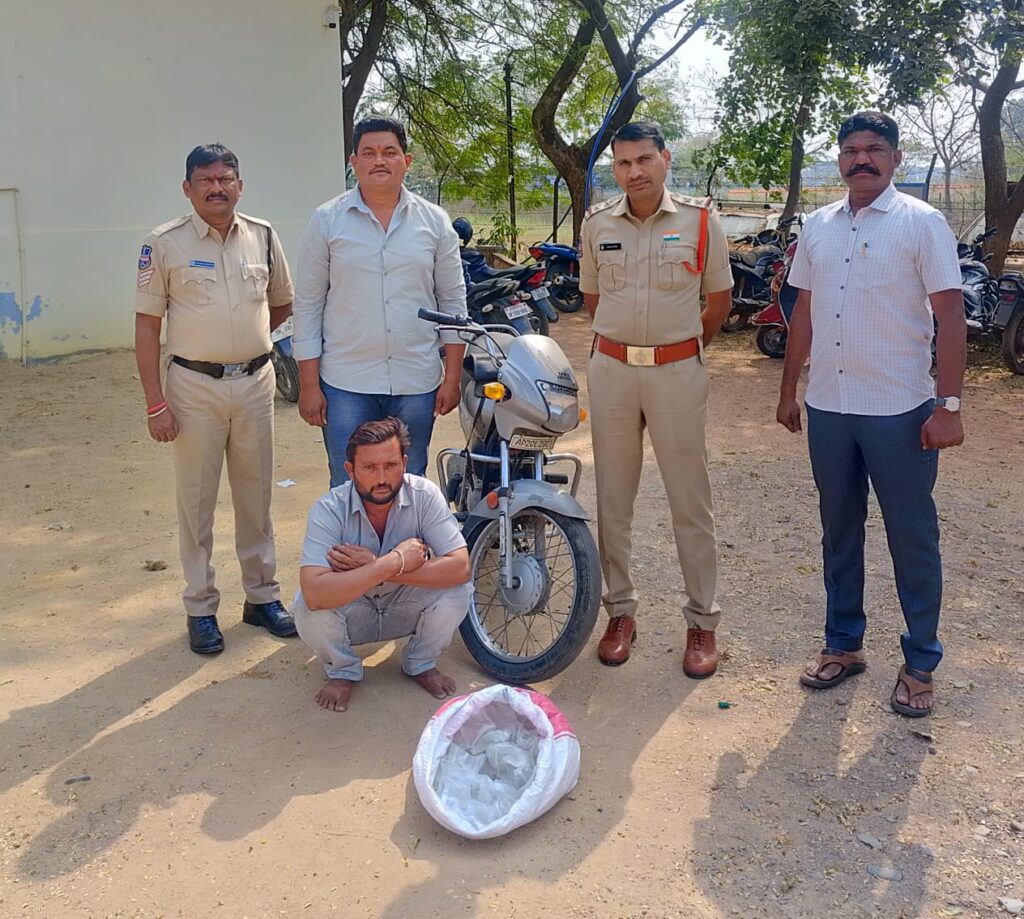 రామకృష్ణాపూర్ ప్రత్యక్షత:- పట్టణంలోని అబ్రహం నగర్ లో ఓ వ్యక్తి గుడుంబా తరలిస్తుండగా పట్టణ పోలీసులు సోమవారం పట్టుకున్నారు. వాహన తనిఖీలో భాగంగా 08 లీటర్ల గుడుంబా 150 ప్యాకెట్లతో ద్విచక్ర వాహనపై వెళ్తున్న వ్యక్తిని అదుపులోకి తీసుకున్నారు. రామకృష్ణాపూర్ ఎస్ఐ శ్రీధర్ కథనం ప్రకారం.. పట్టణంలోని ‘బి’ జోన్ సెంటర్ అబ్రహం నగర్ లో వాహనాలు తనిఖీ చేస్తున్న క్రమంలో పులిమడుగు గ్రామానికి చెందిన భూక్య రవి (45) అనే వ్యక్తి గుడుంబా తయారు చేసి సరఫరా చేస్తున్న 08 లీటర్ల గుడుంబాను 150 ప్యాకెట్లలో నింపి ఓ సంచిలో వేసుకొని ద్విచక్ర వాహనంపై వెళ్తున్న క్రమంలో అనుమానంతో సంచిని పరిశీలించగా గుడుంబా ప్యాకెట్లు బయటపడ్డాయి. దీంతో ఆ వ్యక్తిని వెంటనే అదుపులోకి తీసుకొని గుడుంబా సరఫరా చేస్తున్న ద్విచక్ర వాహనాన్ని గుడుంబా ప్యాకెట్లను స్వాధీనం చేసుకొని కేసు నమోదు చేసినట్లు ఎస్ఐ తెలిపారు. రామకృష్ణాపూర్ పోలీస్ స్టేషన్ పరిధిలో ఎవరైనా వ్యక్తులు గుడుంబా తయారు చేసిన అమ్మిన చట్టపరమైన కేసులు నమోదు చేస్తామని హెచ్చరించారు.ఈ కార్యక్రమంలో హెడ్ కానిస్టేబుళ్ళు జంగు, శ్రీనివాస్, కానిస్టేబుల్ వెంకటేశ్వర్లు ఉన్నారు.