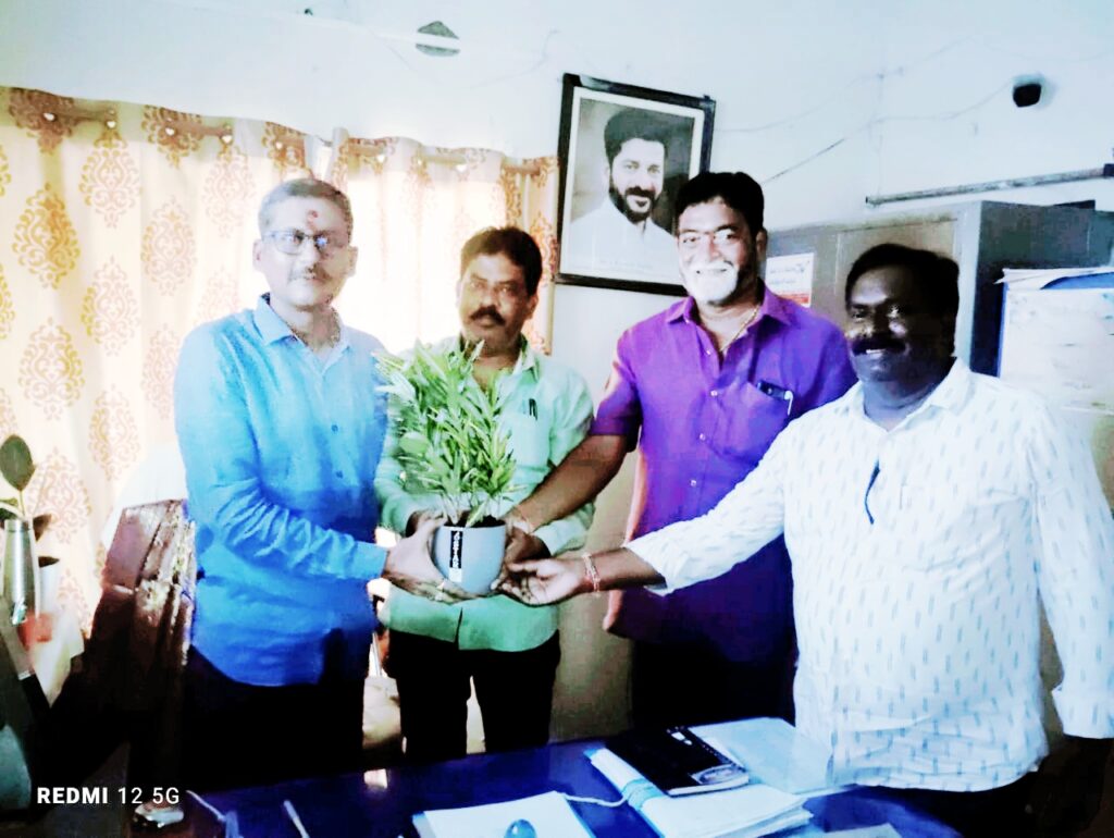 నస్పూర్ ప్రత్యక్షత: మంచిర్యాల జిల్లా నస్పూర్ తహసిల్దార్ సంఘర్స్ సంతోష్ గురువారం బాధ్యతలు ను స్వీకరించిన సందర్భంగా జిల్లా టీఎన్జీవో అధ్యక్షులు గడియారం శ్రీహరి, కార్యదర్శులు భూముల రామ్మోహన్, పొన్న మల్లయ్య శాలువాతో సన్మానించి పుష్పగుచ్చంతో శుభాకాంక్షలు తెలియజేశారు. అనంతరం హౌసింగ్ సొసైటీ ఉద్యోగుల సమస్యలపై ఆయనతో చర్చించారు. ఆయన సానుకూలంగా స్పందిస్తూ నస్పూర్ మండల ప్రజలకు అందరికీ మెరుగైన సేవలు అందేలా తన వంతు సహాయ సహకారాలు అందజేస్తానని తెలిపారు.