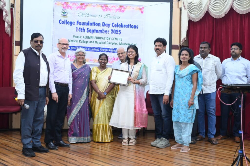 మంచిర్యాల ప్రత్యక్షత:-హైదరాబాద్ గాంధీ మెడికల్ కళాశాలలో నిర్వహించిన గాంధీ ఫార్మేషన్ డే కార్యక్రమంలో టీఎన్జీవో జిల్లా అధ్యక్షుడు గడియారం శ్రీహరి పల్లవి ల రెండవ కుమార్తె డాక్టర్ అక్షయ మైక్రో బయాలజీలో గోల్డ్ మెడల్ సాధించింది. ఆదివారం హైదరాబాద్ లో నిర్వహించిన ఈ కార్యక్రమానికి ముఖ్య అతిథిగా డాక్టర్ బి రాజారెడ్డి ముఖ్యఅతిథిగా హాజరై, డాక్టర్ అక్షయ గడియారం కు గోల్డ్ మెడల్ తో పాటు ప్రశంస పత్రం అందజేశారు. ఈ సందర్భంగా టీఎన్జీవో జిల్లా అధ్యక్షుడు గడియారం శ్రీహరి మాట్లాడుతూ, గాంధీ మెడికల్ కళాశాలలో ఎంబిబిఎస్ పూర్తి చేసుకుని హౌస్ సర్జన్ చేస్తున్న తన రెండవ కుమార్తె డాక్టర్ గడియారం అక్షయ ఎంబిబిఎస్ రెండో సంవత్సరంలో మైక్రో బయాలజీ విభాగంలో గోల్డ్ మెడల్ సాధించడం ఆనందంగా ఉందన్నారు. వైద్యురాలిగా నిరుపేద వర్గాలకు సేవ చేయాలనే ఆశతో తన కుమార్తె ఉందని తెలిపారు. ఈ సందర్భంగా గడియార అక్షయకు టీఎన్జీవో జిల్లా కార్యదర్శి భూముల రామ్మోహన్, కేంద్ర సంఘం కార్యదర్శి పొన్న మల్లయ్య, అసోసియేట్ అధ్యక్షుడు శ్రీపతి బాపు రావు, జిల్లా కార్యవర్గ సభ్యులు, అన్ని యూనిట్ల అధ్యక్ష కార్యదర్శులు, సభ్యులు శుభాకాంక్షలు తెలుపుతూ, ఆమెను అభినందించారు.
